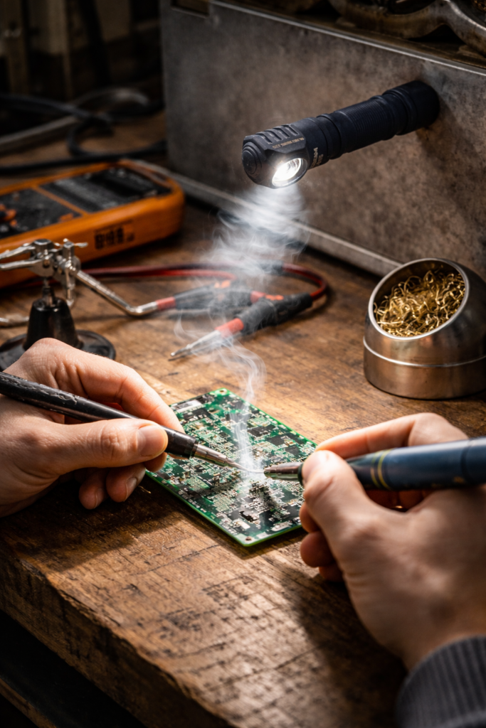 LED-Winkelkopflampen sind Taschenlampen mit seitlich abgewinkeltem Lampenkopf, die sowohl in der Hand, am Gürtel oder freihändig befestigt genutzt werden können. Sie eignen sich besonders für Arbeiten, Outdoor-Einsätze und Notfälle.